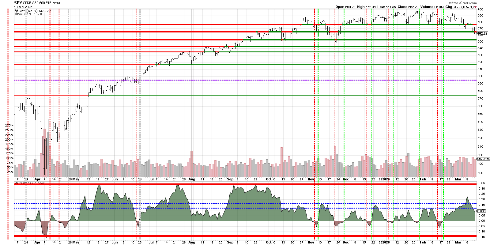 For the week ended Mar 13, the S&P 500 fell about 1.6%, the Nasdaq about 1.3%, and the Dow about 2.0%, marking a third consecutive weekly loss and pushing all three to new 2026 lows.