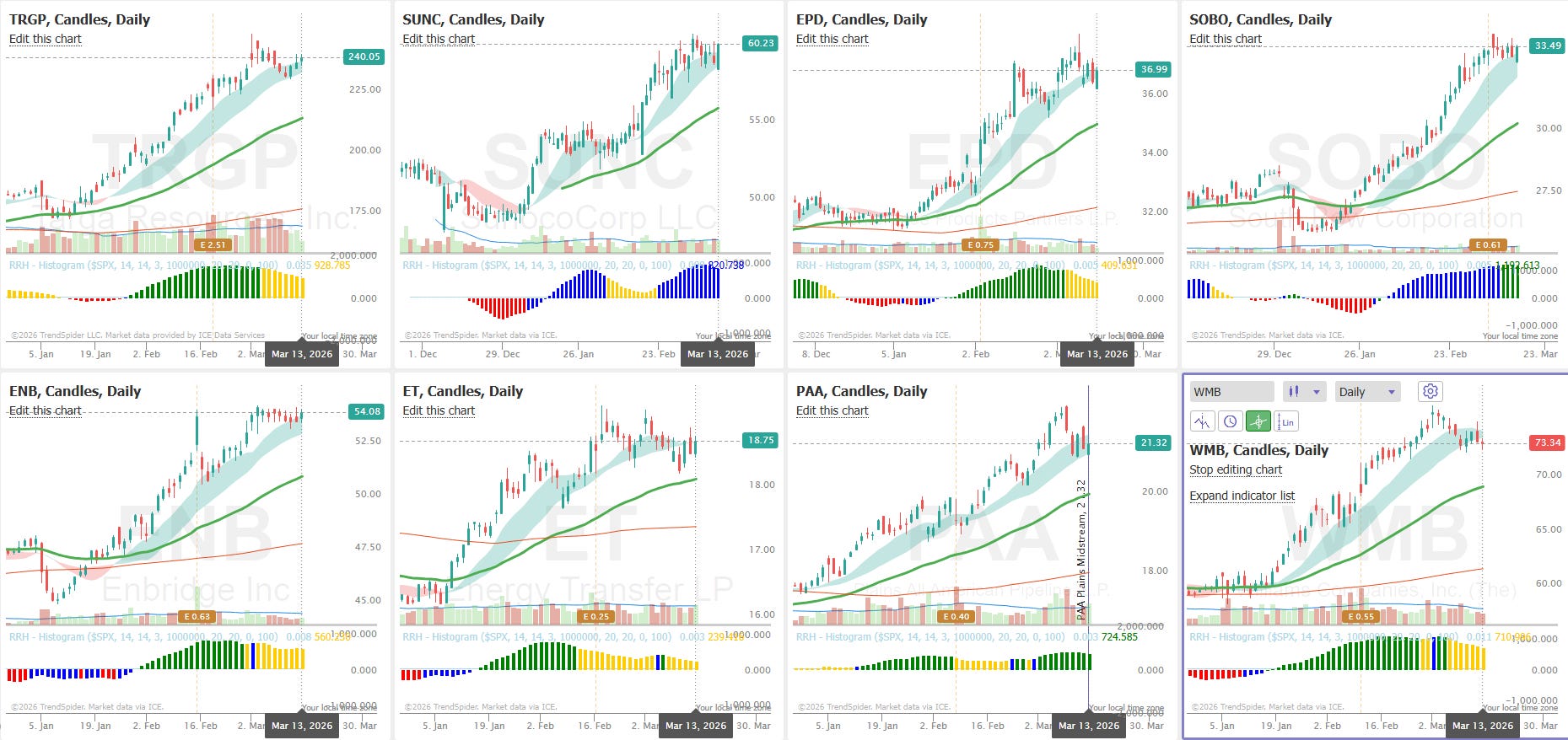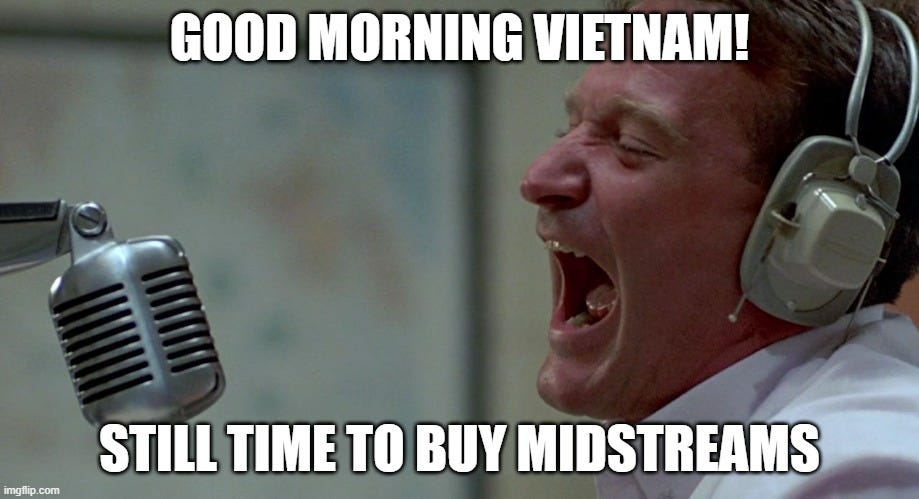 This is not a rookie traders’ market. VIX is elevated still. You will get roasted more than you find success. This is not an experienced traders market either. We are below the 50 day across major indexes. Midstreams and related however, look really good and the setups are growing.