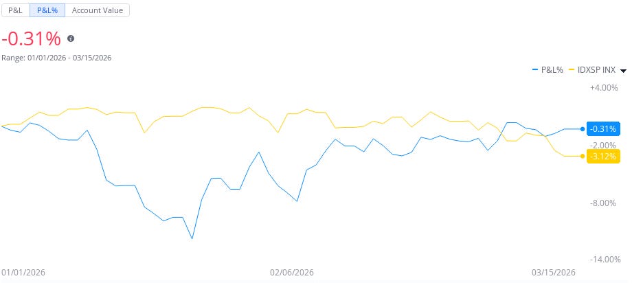 Thoughts this week: While I finished even on the week, the market is correcting, so now we are outperforming the S&P 500 on the year by +3%… Such a critical juncture. I lost some on gold this week and that drew me back despite some wonderful gains on a couple of my alerts. Probably just need to stick with my alerts only for now… Feels great and I’m well positioned with TRGP for potential gains longer term