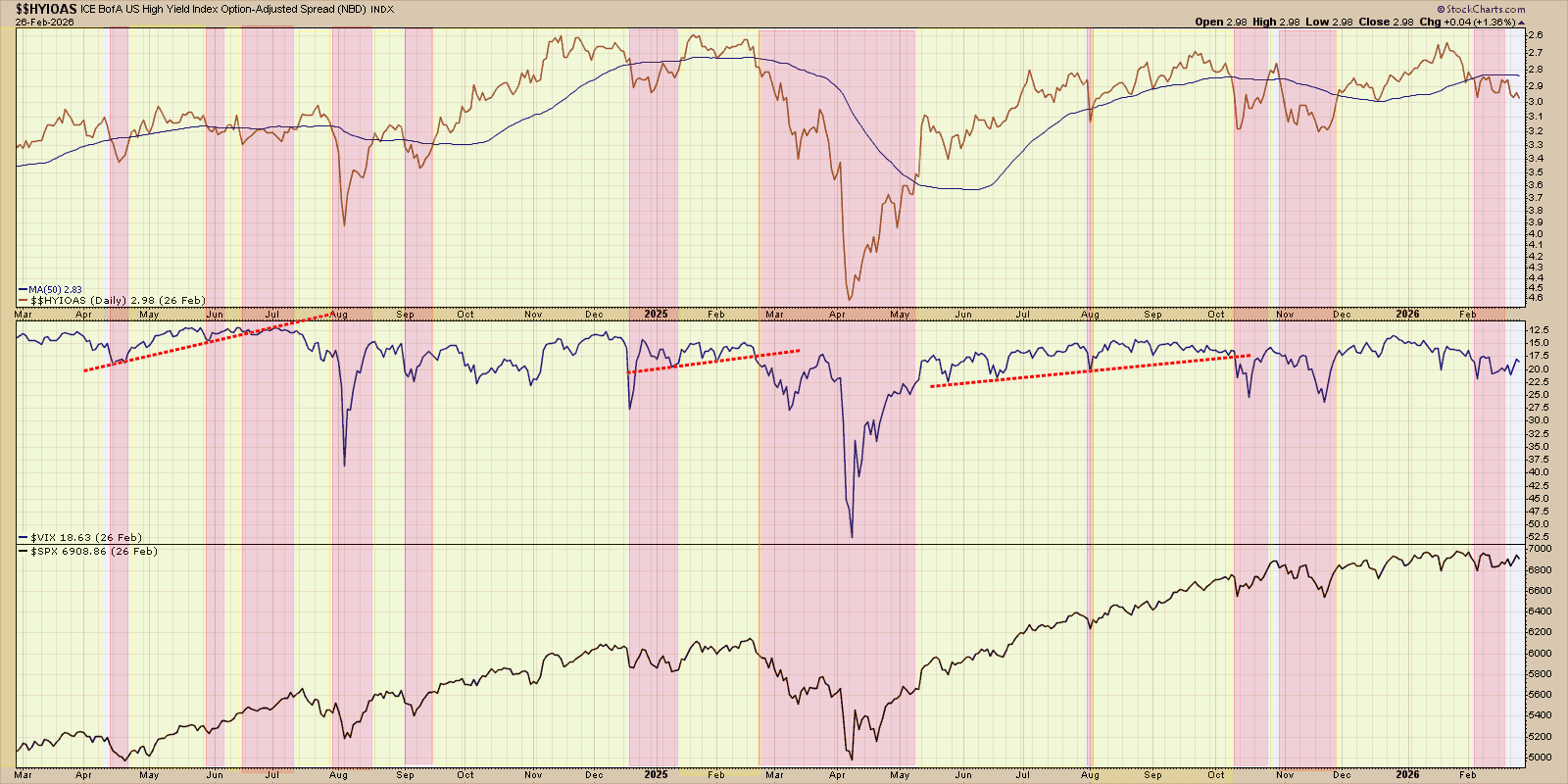 Historically, sustained widening of high‑yield spreads and a rising VIX tend to precede or accompany equity pullbacks, because investors demand more compensation for risk and hedge more aggressively