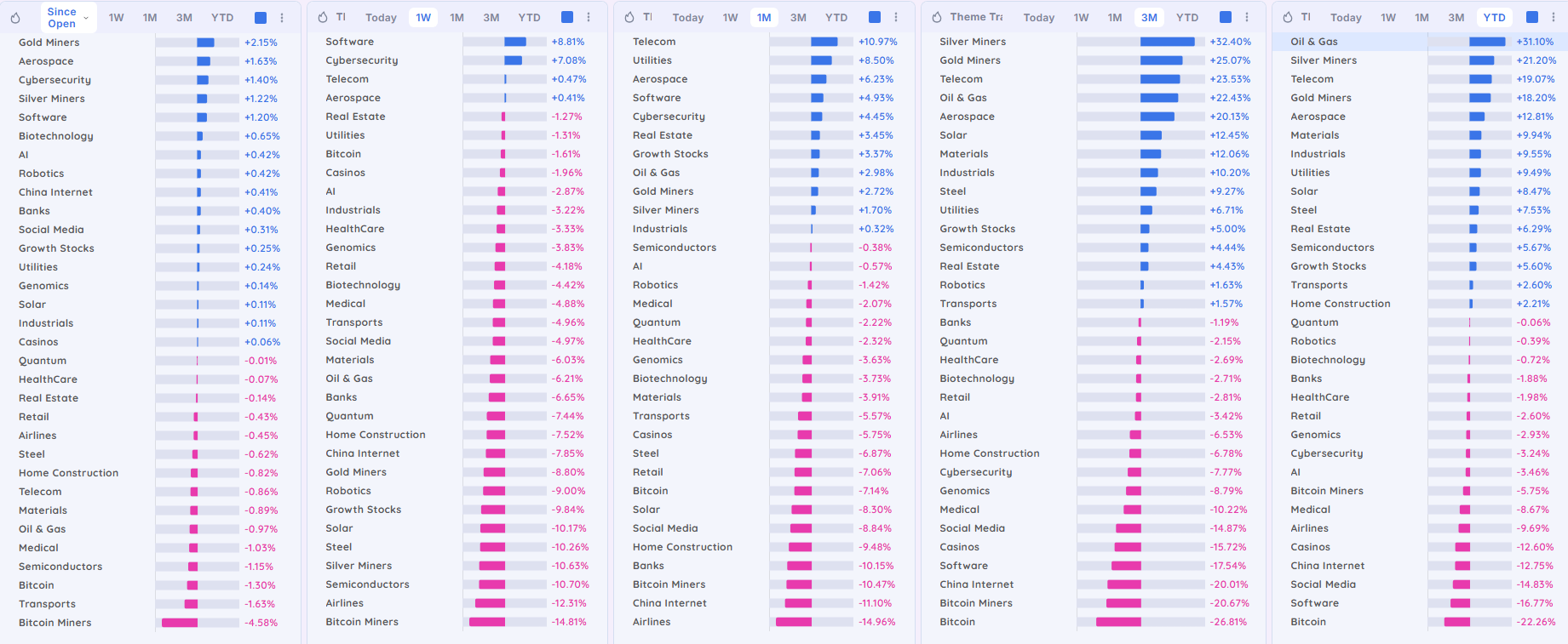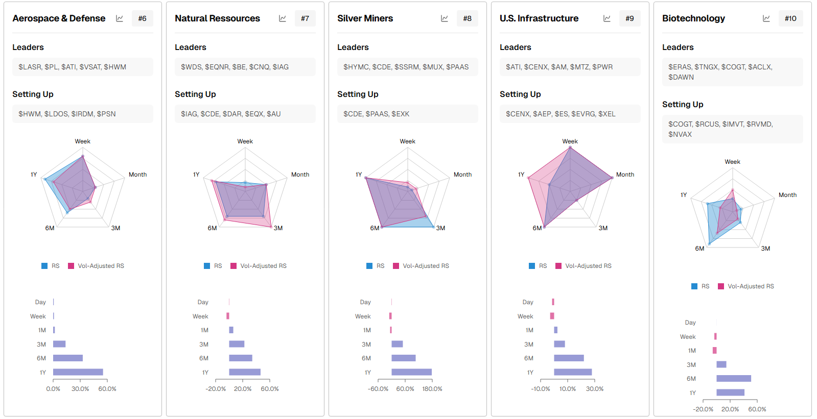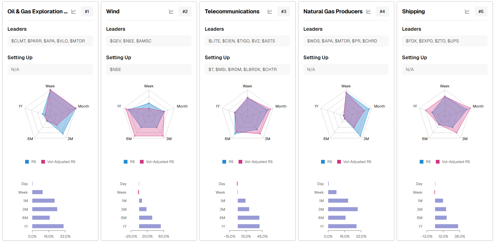 Secondary / “setting‑up” bucket: Use Telecom, Infrastructure, and Silver Miners as “add‑on” universes for fresh bases or first pullbacks after a new 3‑month RS surge.