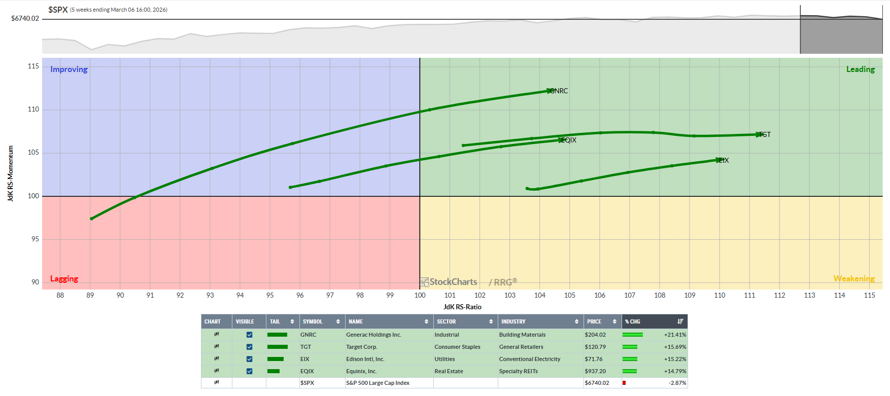 Liquid Leaders Bullish Defensive RRG tickers: GNRC, TGT, EIX, EQIX