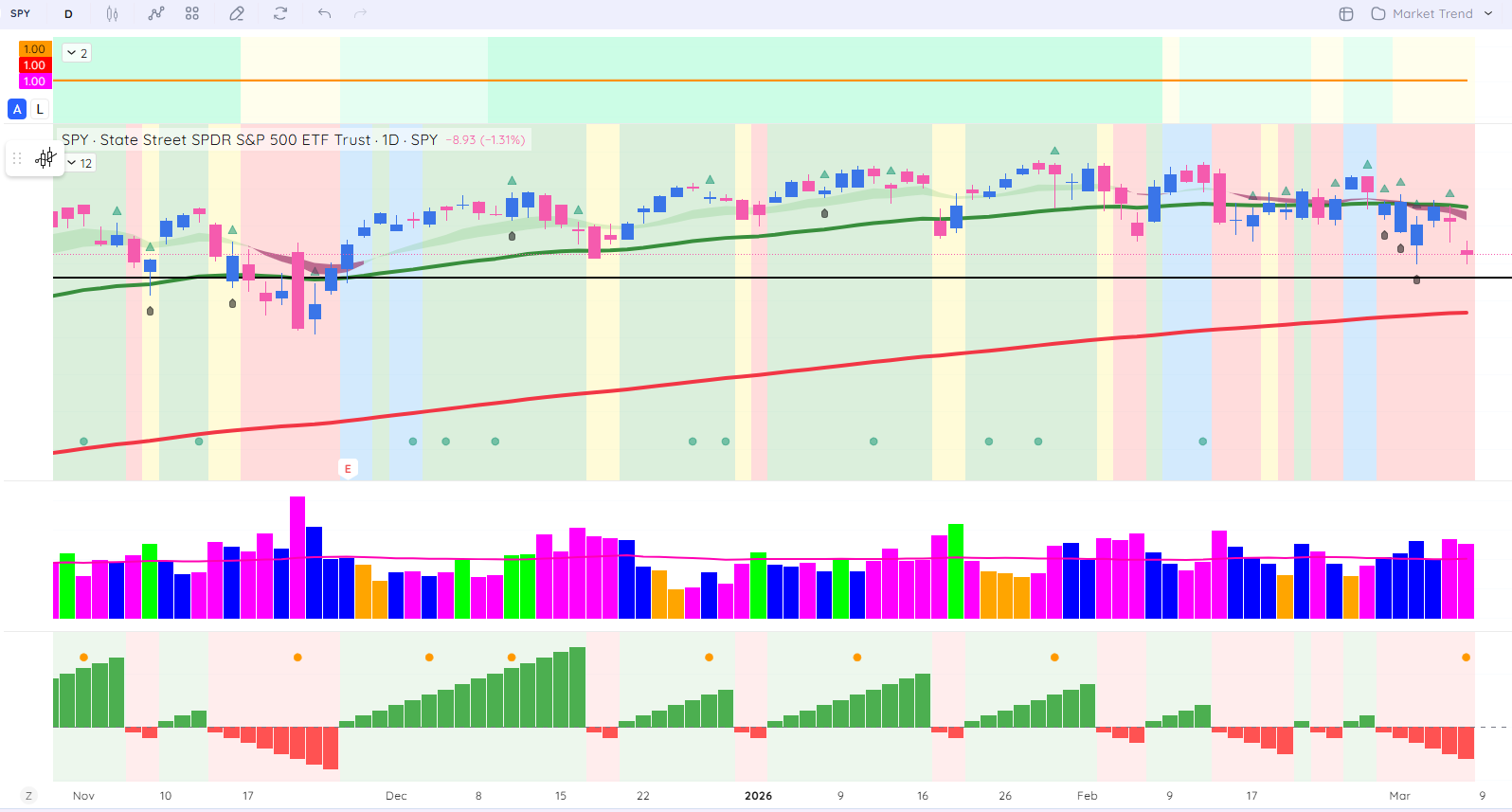 Tape: We’re in a volatile range environment rather than a clean trend—S&P still making lower highs under the 7,000 area, with fast swings driven by inflation, oil, and geopolitical headlines.